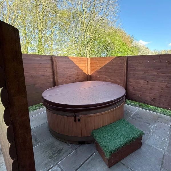 The highlight of this outdoor area is the luxurious 4‑seater hot tub, providing a soothing spot to unwind and enjoy the tranquil surroundings. Whether you're starting the day with a gentle soak or ending it under the night sky, it adds a truly indulgent touch to your stay.
