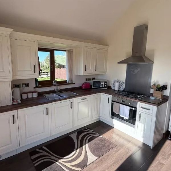 The open‑plan kitchen is fully equipped to make your stay comfortable and convenient. It features a single electric oven paired with a 4‑burner gas hob, giving you all the essentials for preparing anything from simple breakfasts to relaxed evening meals.