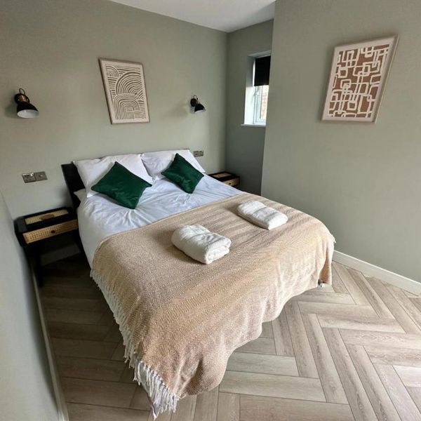 Relax and unwind in this spacious and inviting bedroom, designed for comfort and style. At its center is a luxurious king-size bed, dressed in crisp, high-quality linens and soft pillows to ensure a restful night’s sleep. The room is tastefully decorated in calming tones, creating a serene atmosphere perfect for relaxation.