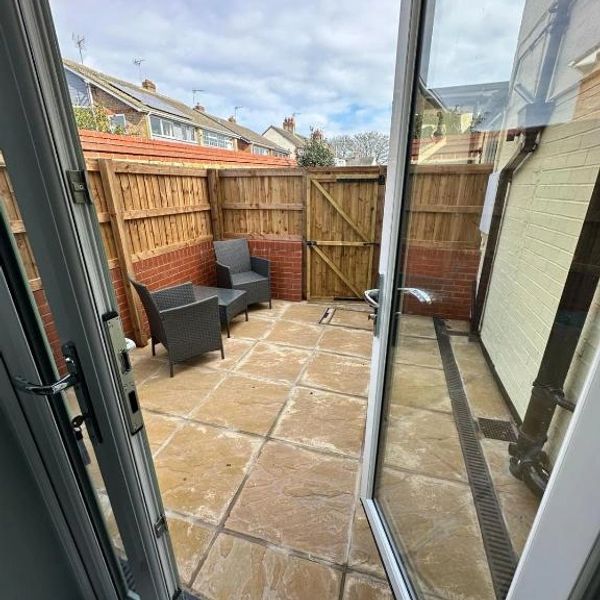Step outside into a private patio garden, the perfect spot to relax and enjoy the fresh coastal air. The patio is furnished with comfortable outdoor seating, creating an inviting space for morning coffee, leisurely lunches, or evening drinks. This tranquil area offers a peaceful retreat for guests to unwind after a day exploring Hornsea and the Yorkshire coast.
